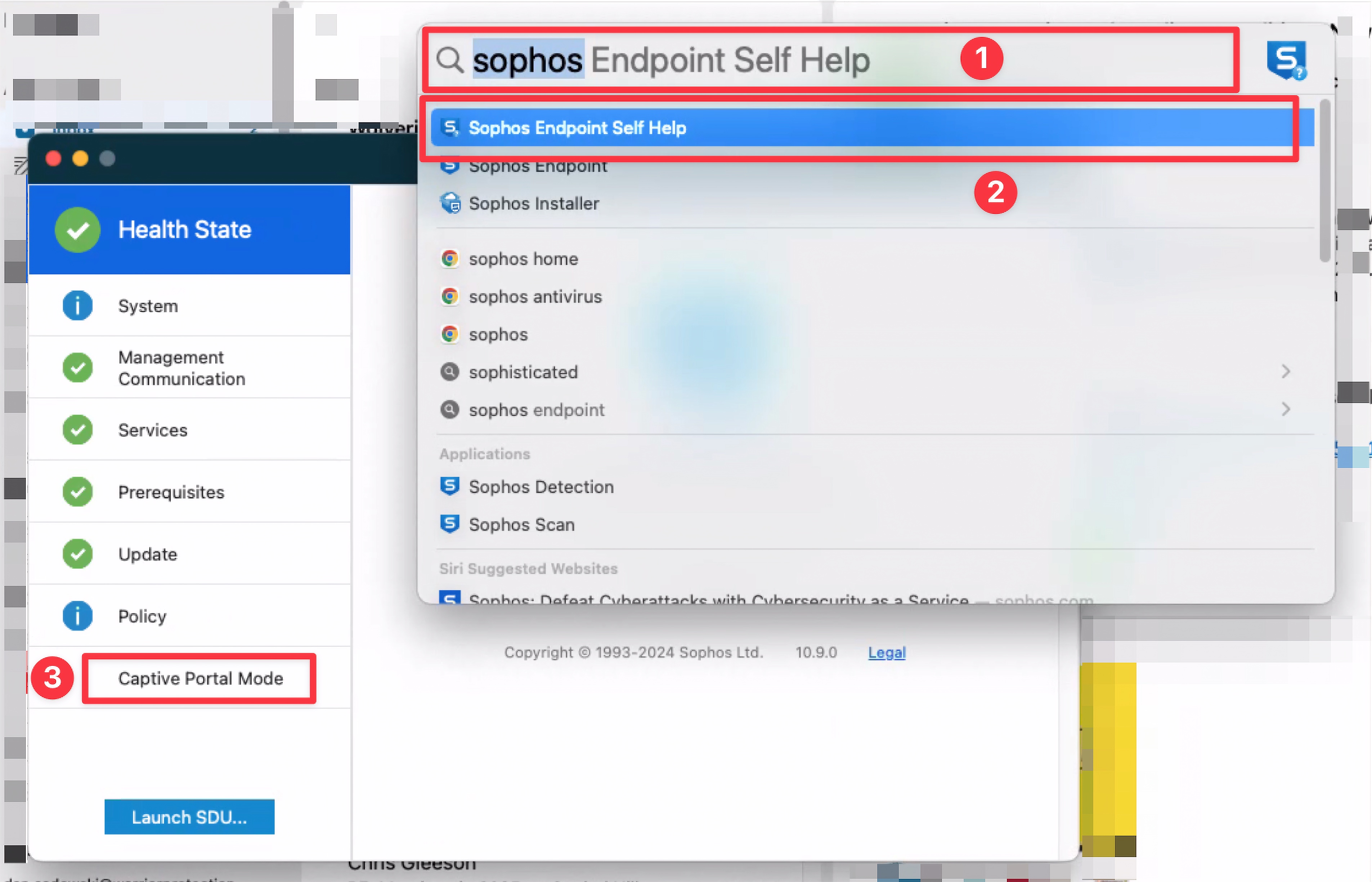 - Use spotlight to search for Sophos Endpoint Self Help app.