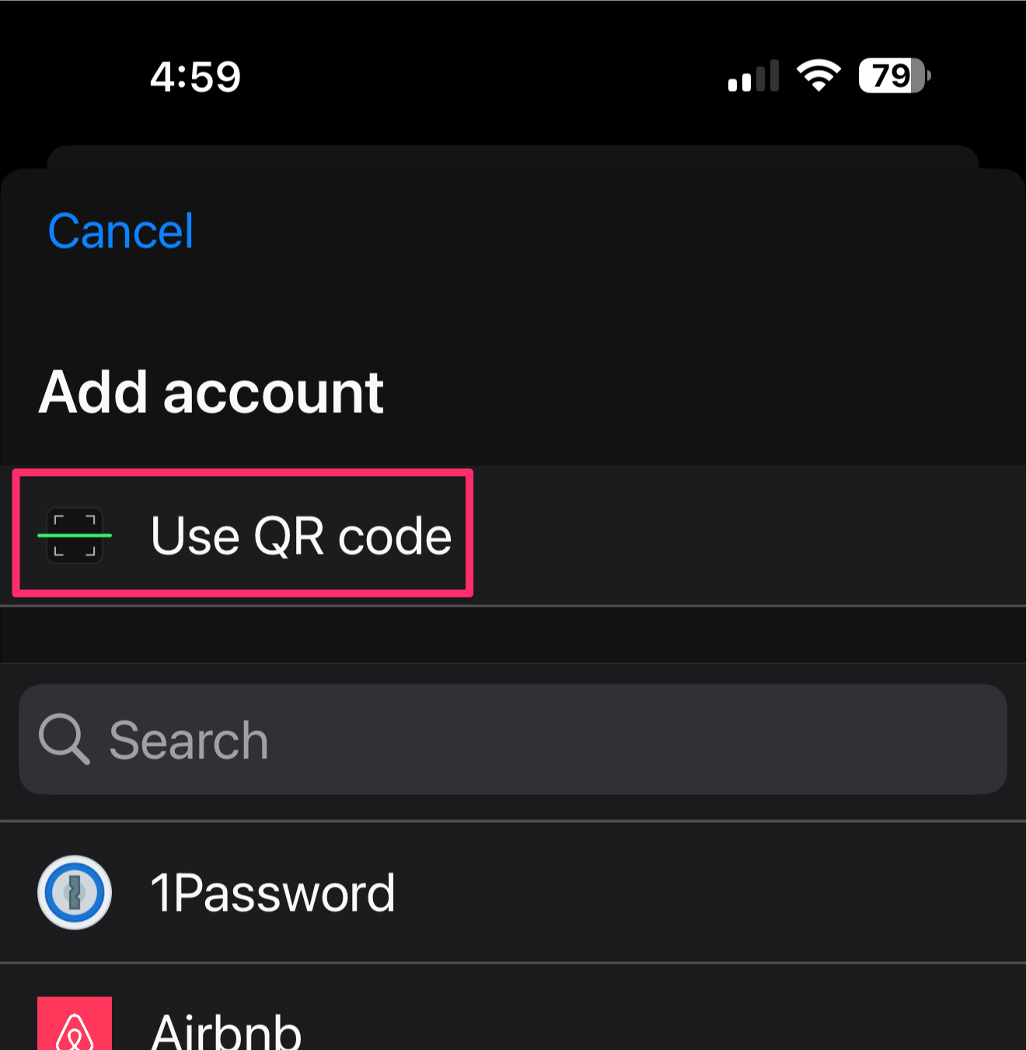 - Tap “Use QR Code” on the next screen in the mobile app.